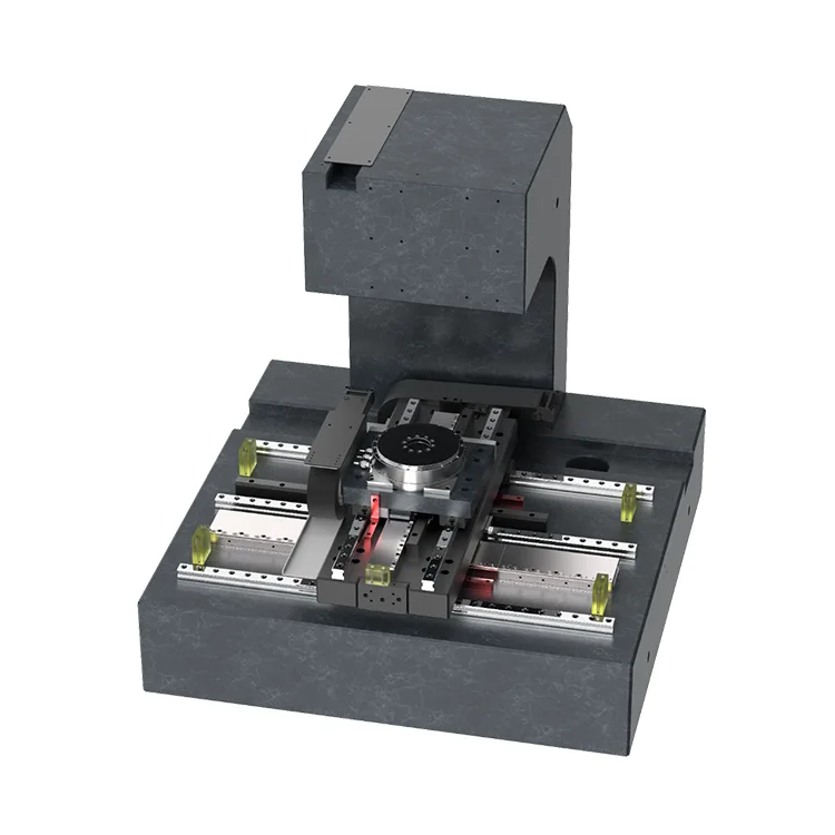 고해상도 선형 인코더(0.05μm 분해능)와 Theta 축용 직접 구동 토크 모터가 장착된 이 플랫폼은 ±0.5μm 반복 위치 정확도(X/Y), ±1μm 절대 정확도(X/Y), ±2μm Z축 위치 정확도 및 0.001° Theta 축 각도 정확도를 달성합니다. 이를 통해 웨이퍼 다이와 테스트 프로브/검사 광학 장치 간의 정밀한 정렬이 보장되며, 전기 특성화 및 광학 검사에서 오정렬로 인한 오류가 제거됩니다.